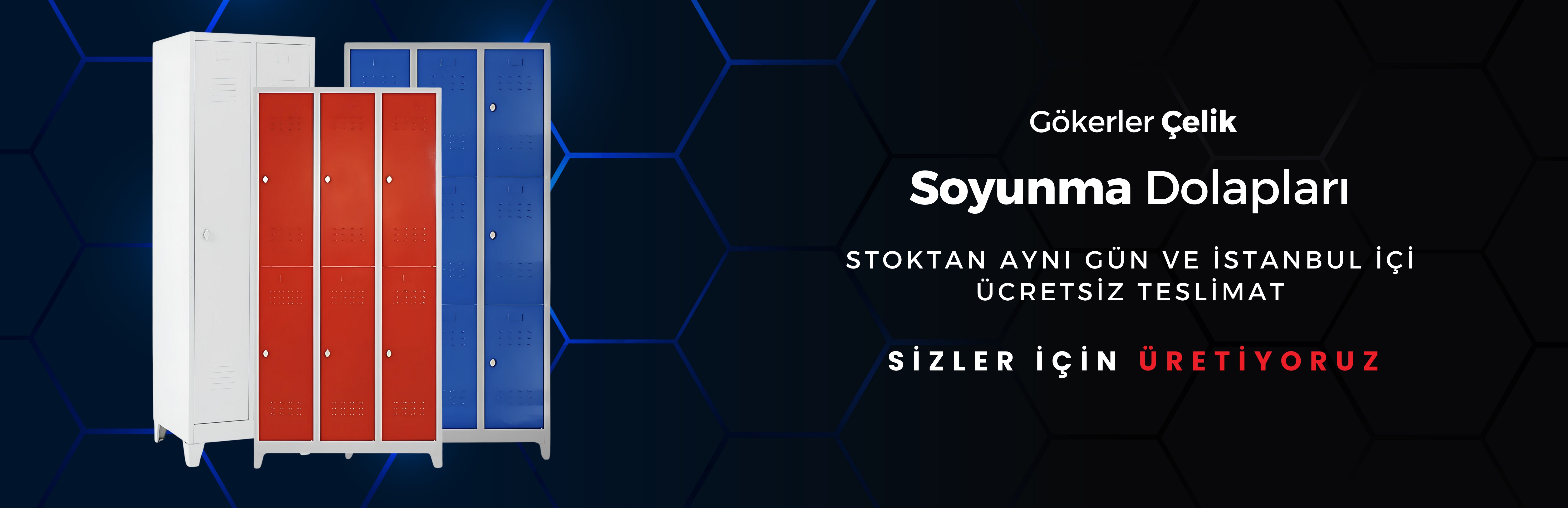 Gökerler Çelik Eşya, 2008 yılından itibaren fabrika, kurum ve kuruluşların personelleri için metal dolap imalatı yapmaktadır. Referanslar arasında ülkemizin en büyük kamu ve özel şirketleri vardır. İmalatını yaptığı çelik dolap modelleri arasında; soyunma dolabı, personel dolabı, ofis dosya dolabı, kartoteks dolabı, kompakt arşiv dolabı, emanet dolabı, malzeme dolabı, banklı soyunma odası dolabı, soyunma kabini ve işçi dolapları yer alıyor. Çelik dolaplarda Ereğli Demir Çelik tesislerinde üretilen soğuk haddelenmiş 6112 A-1 kalite paslanmaz çelik sac kullanılmaktadır. Dolaplarda askı, şifreli ya da asma kilit, raflı sistemler kullanılmaktadır. Amaca göre standart ve ekonomik kategoride farklı göz ve ölçülerde üretilmektedir. İmalathanemiz İstanbul’da yer alıp Türkiye’nin her yerine gönderim yapmaktadır. Çelik sac fiyatları dolar kuruna endeksli olduğu için metal dolap fiyatları değişebilmektedir. Güncel fiyat için bizimle iletişime geçip, teklif isteyiniz.